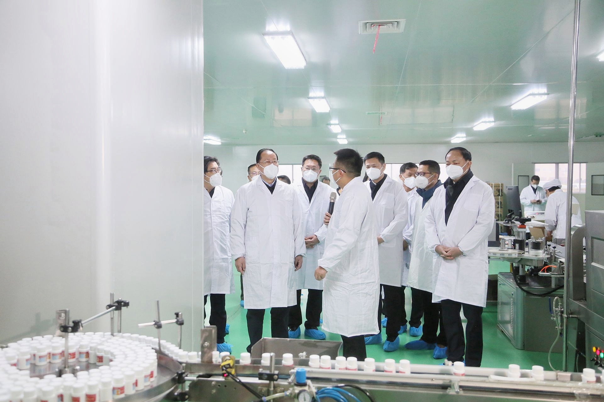 他叮囑企業一方面要加強疫情防控,實行封閉或半封閉管理,確保正常生產運轉,一方面要落實好作為藥品生產主體的責任,加強技術改造和產線擴能,開足馬力生產,嚴格質量控制,及時把產能變產量,更好服務保障全省、全國防疫藥品市場需求。